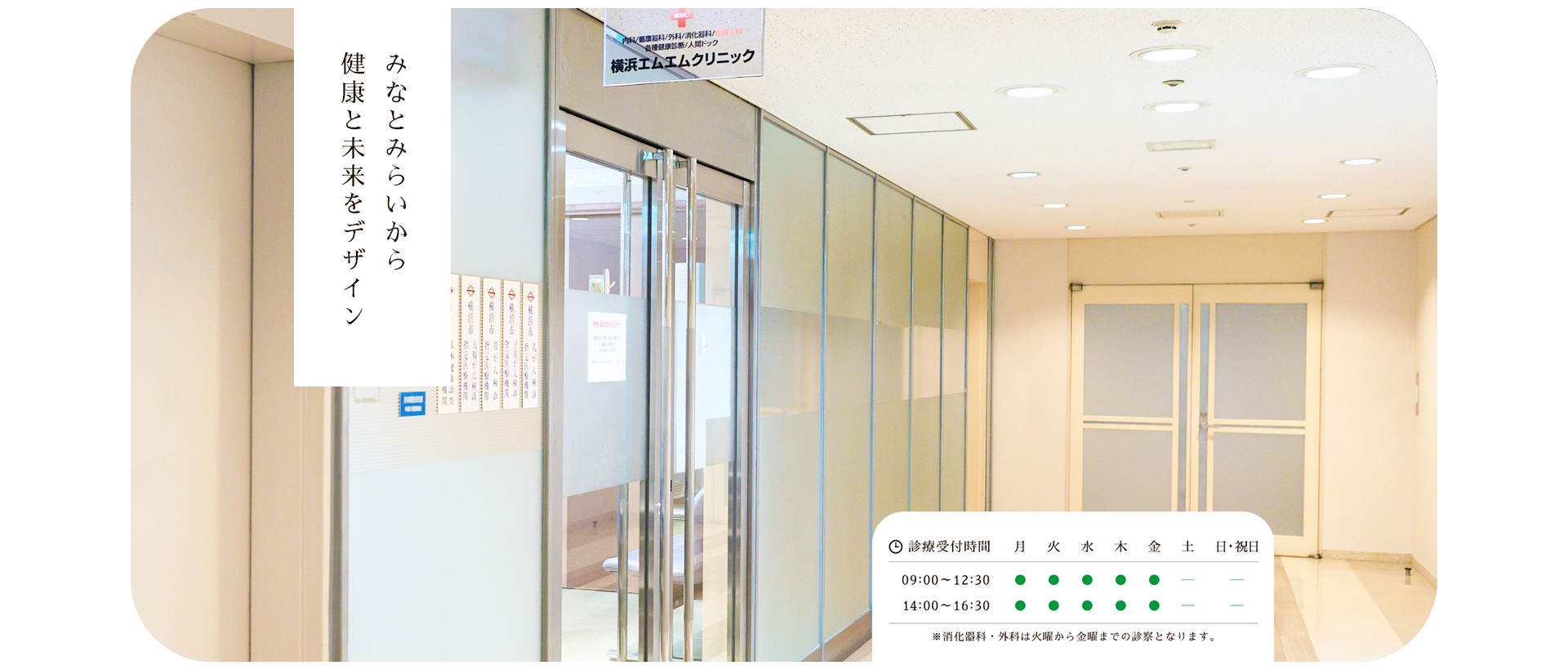 横浜エムエムクリニックは、みなとみらいエリアの“身近なかかりつけ医”として、地域の皆様の健康を総合的にサポートしています。内科診療・健康診断・訪問診療を中心に、年代やライフスタイルを問わず、ご相談いただける医療体制を整えています。